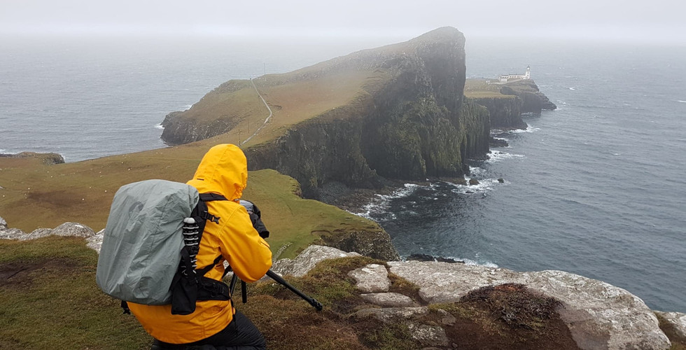 Ceci dit, nous en rions beaucoup et rentrons nous sécher dans le van (pouvoir étendre nos vêtements et rester au sec a été un des gros avantages d’avoir un van) et partons en direction des Fairy Pools. Nous avons malheureusement le même temps en arrivant là-bas et voyons à peine devant nous. Ce site est très très touristique, nous croisons beaucoup de monde (attention, la rivière peut couper le chemin de marche si beaucoup de pluie, prévoir des bottes) et n’allons donc pas très loin donc repartons. Une journée extrêmement pluvieuse, nous sommes en Ecosse donc tout est toujours très beau mais c’est un peu plus compliqué pour les photos et le matériel ... à tel point que Marion tente d’enlever les gouttes sur l’objectif toutes les deux minutes !